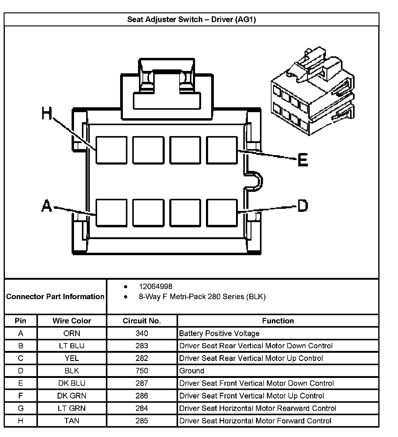 Seat Adjuster Switch - Driver (With RPO Code AG1):