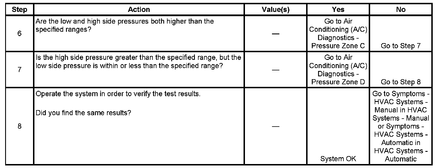 1. This step determines if the A/C system has at least the minimum refrigerant charge required to operate the system without damage.