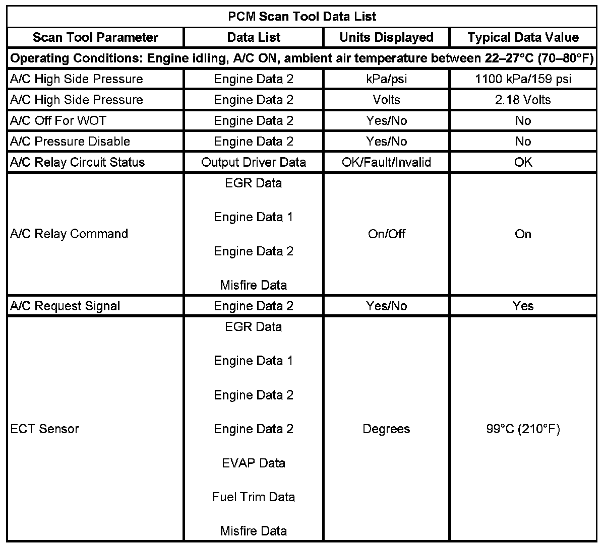 PCM Scan Tool Data List: