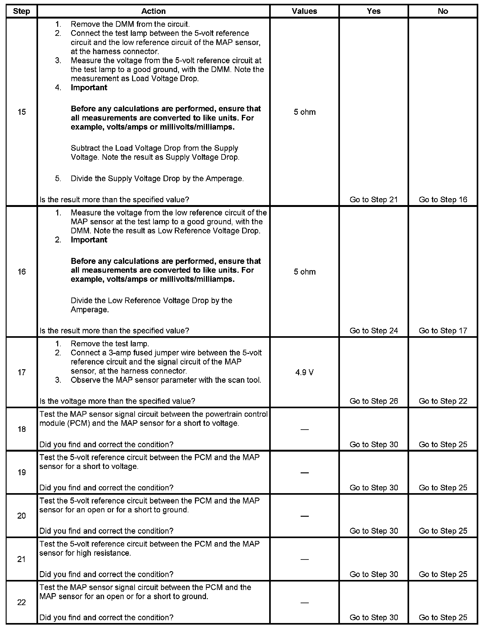12. The measurement noted in this step will be used in subsequent steps if the measurement does not exceed the specified value.
