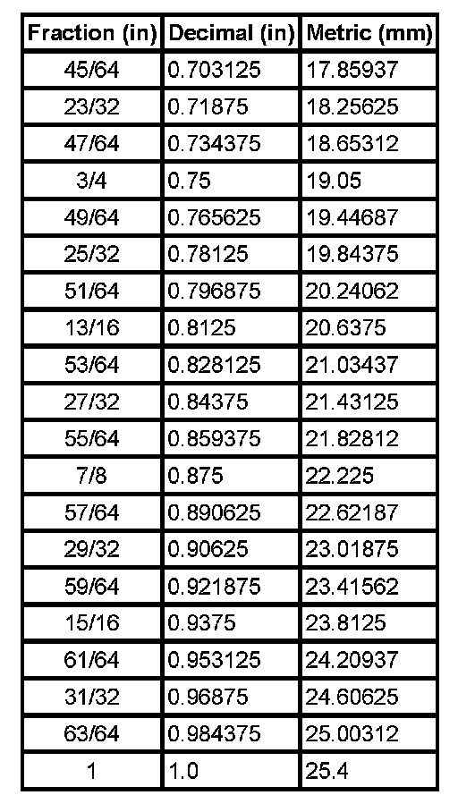 Equivalents - Decimal And Metric