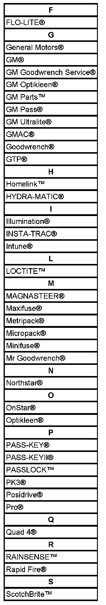Listed are Registered Trademarks ((R)) or Non-Registered Trademarks ((TM)) which may appear in this service data.
