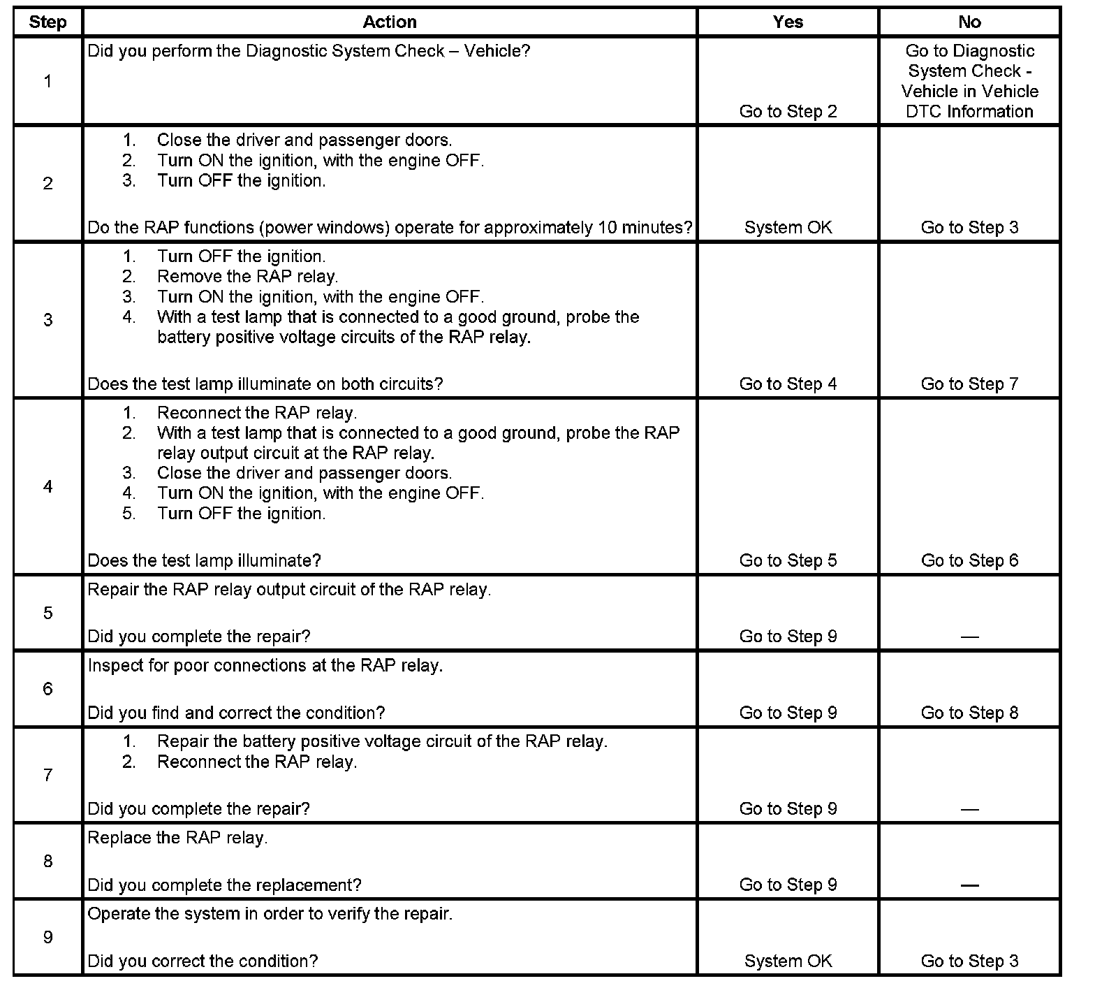 Retained Accessory Power (RAP) Inoperative