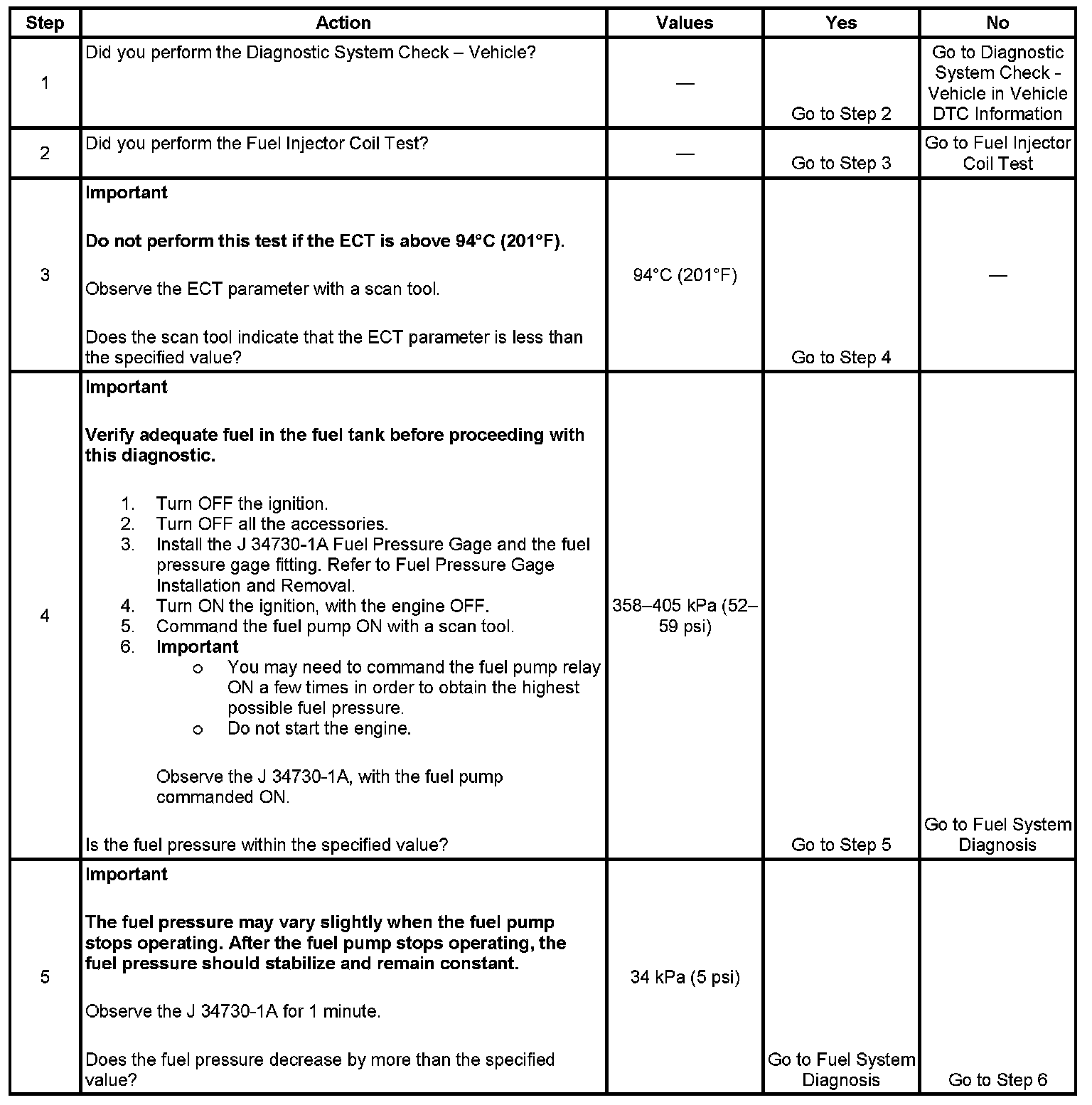 3. The engine coolant temperature (ECT) must be below the operating temperature in order to avoid irregular fuel pressure readings due to hot soak fuel boiling.