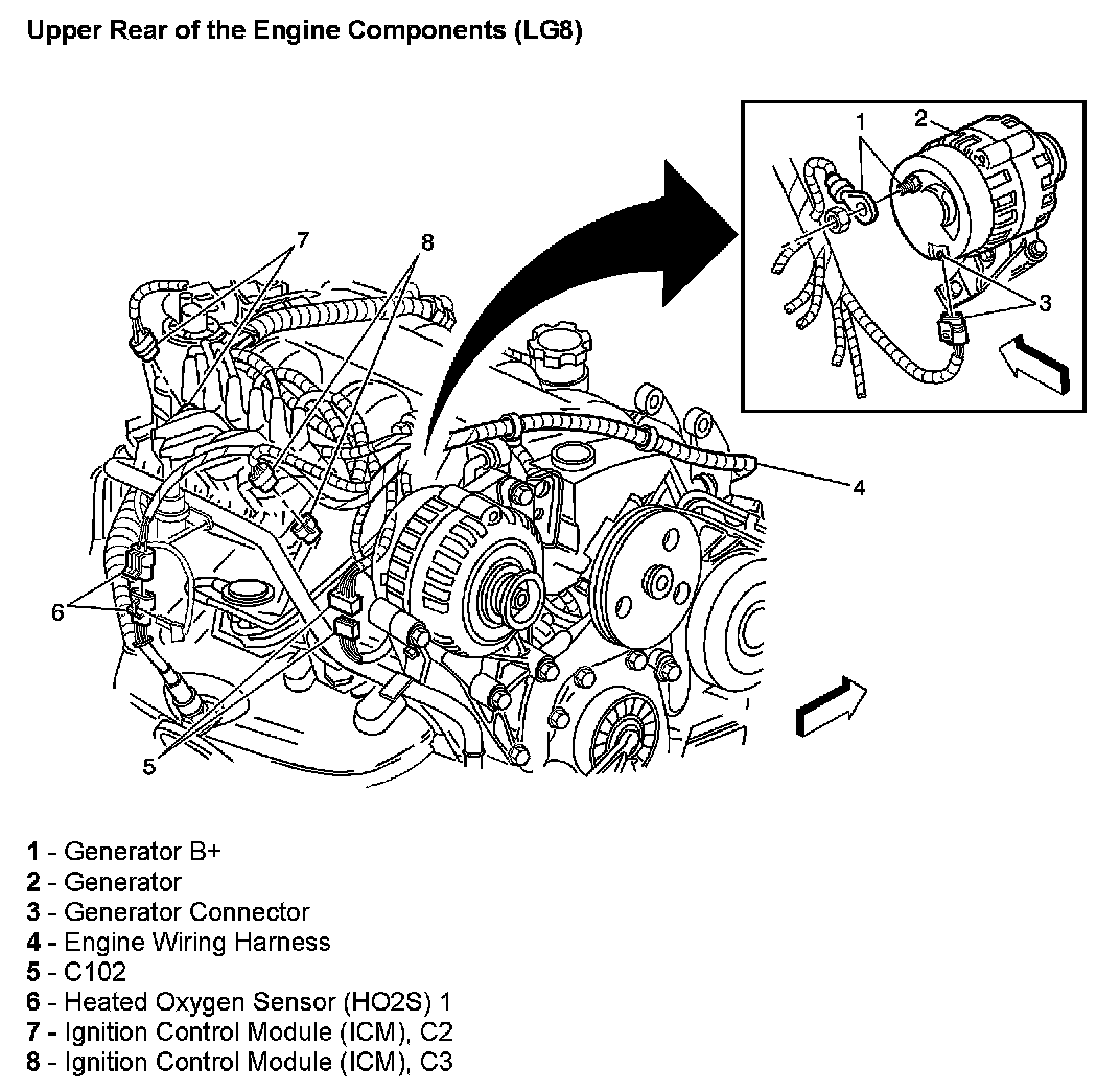 Upper Rear Of The Engine Components:
