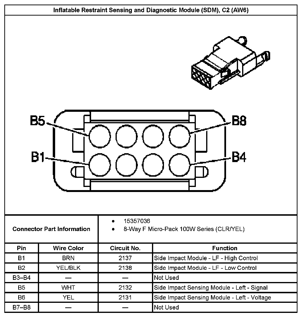 Inflatable Restraint Sensing And Diagnostic Module (SDM), C2 (With RPO Code AW6):
