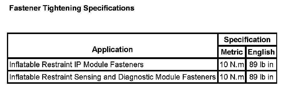 Air Bag Systems: Specifications