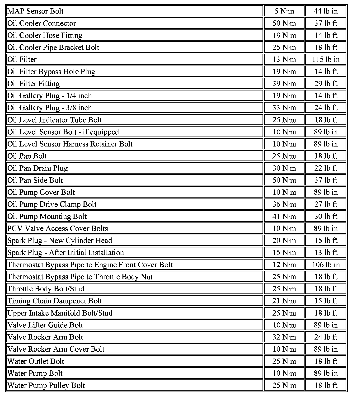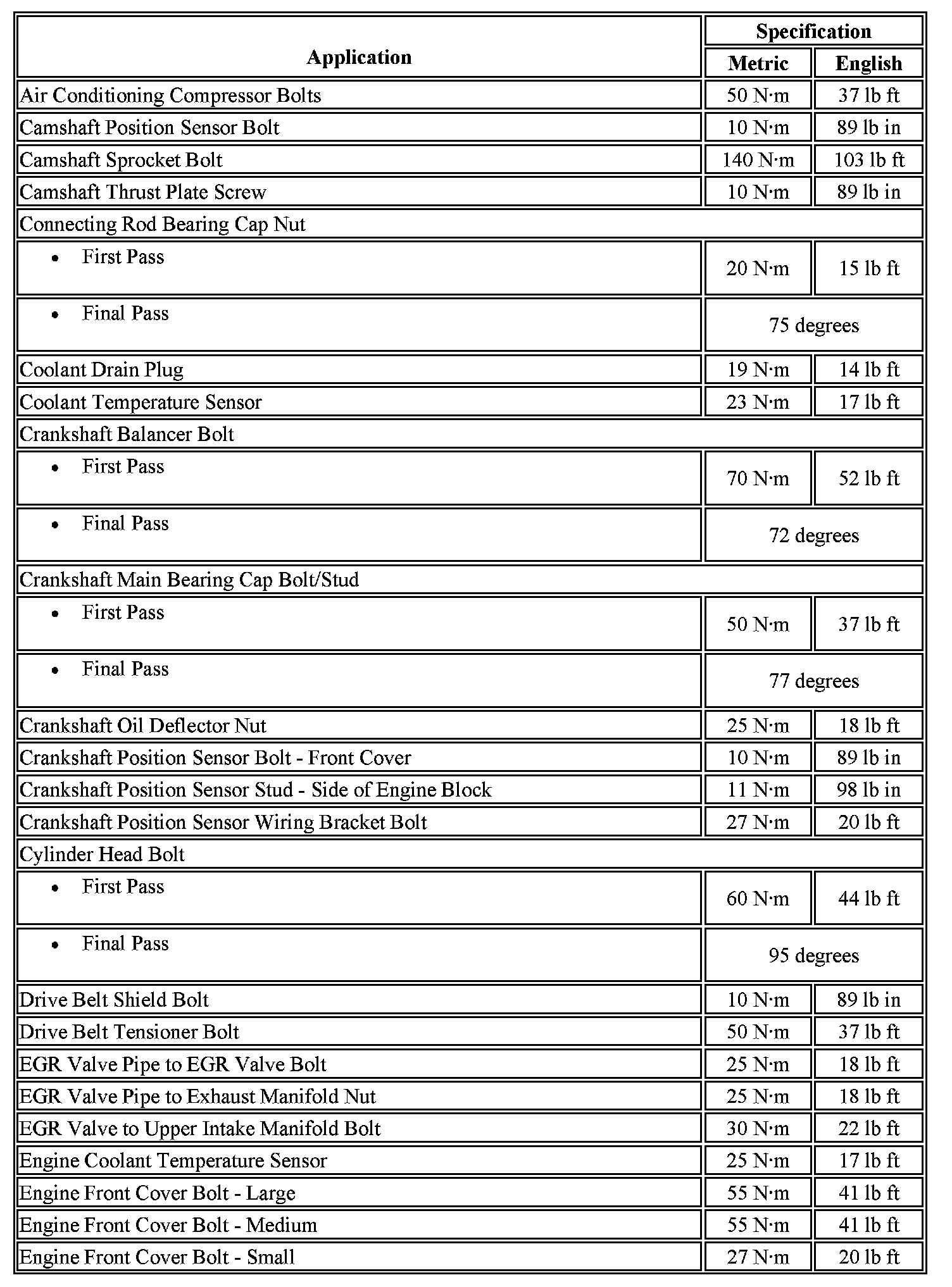 Fastener Tightening Specifications