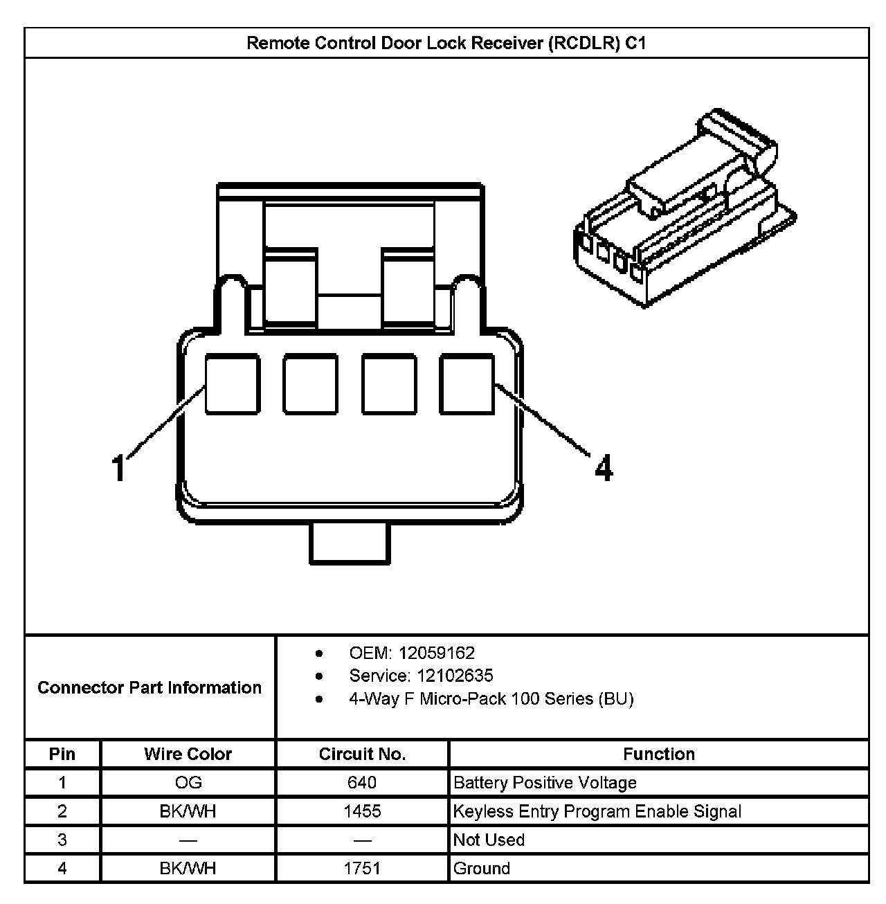 Remote Control Door Lock Receiver (RCDLR) C1: