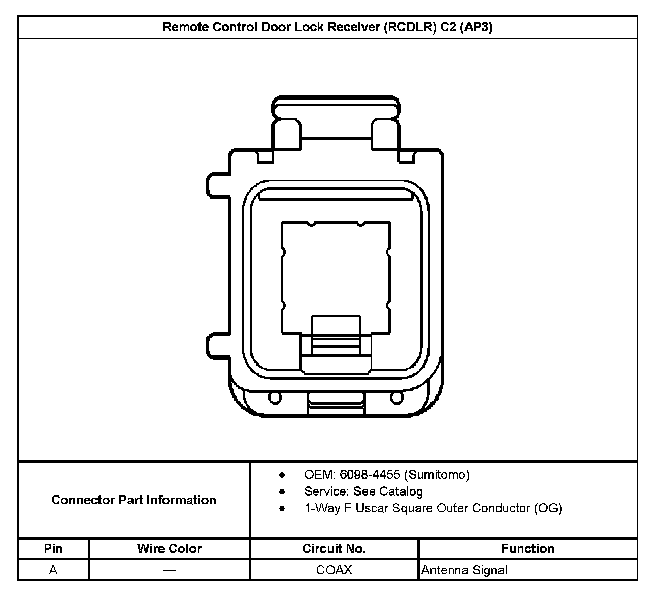 Remote Control Door Lock Receiver (RCDLR) C2 (With RPO Code AP3):