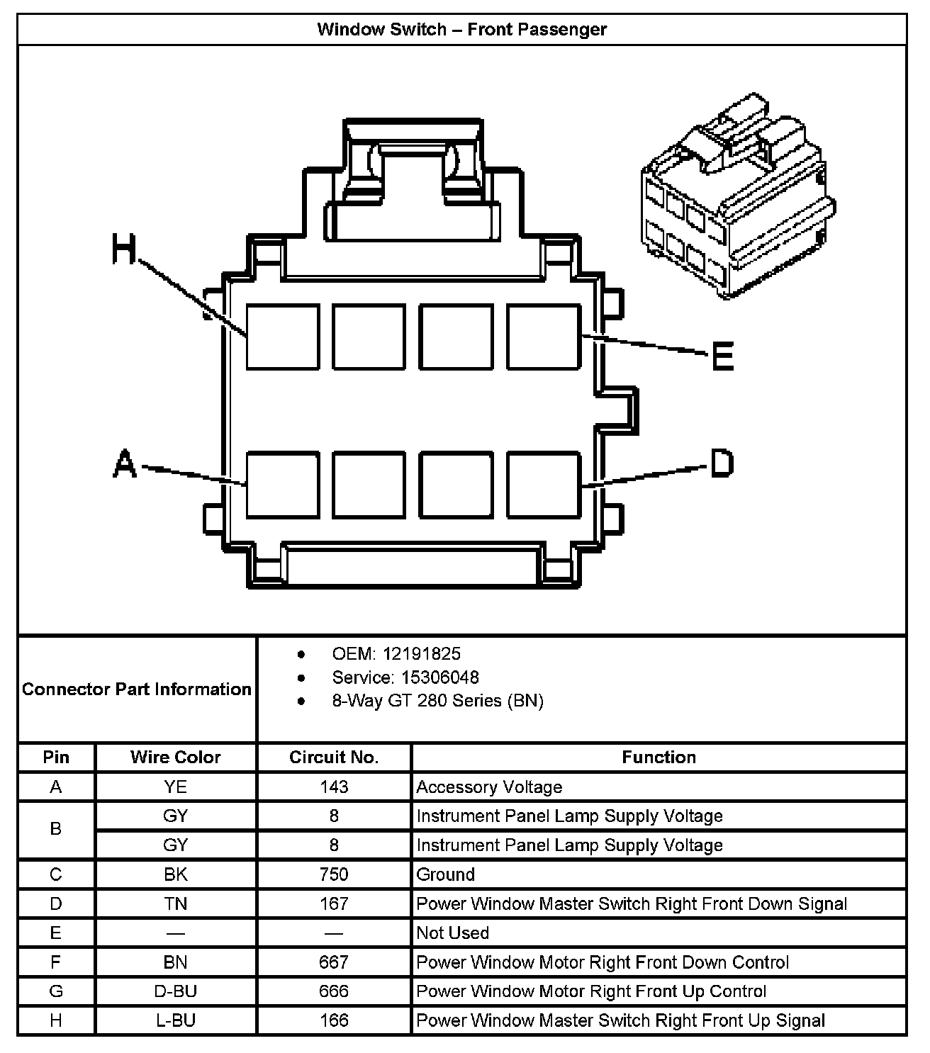Window Switch - Front Passenger: