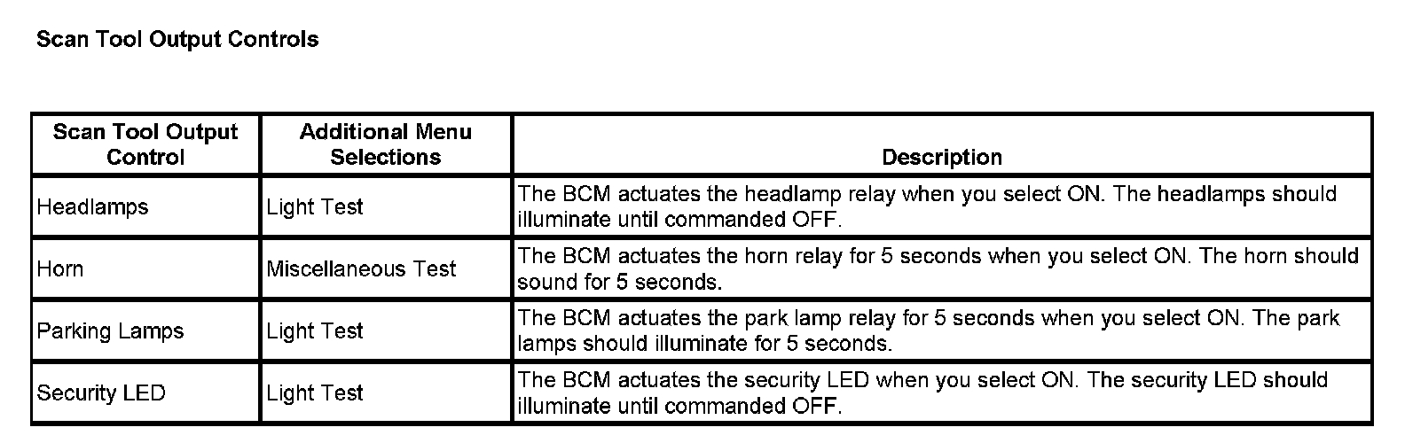 Scan Tool Output Controls: