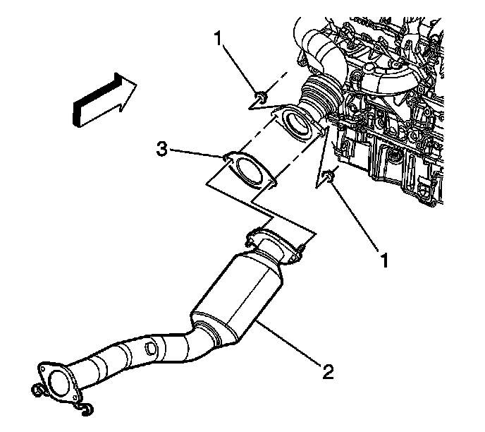 1. Important: The catalytic converter is serviced by replacing the entire assembly. Always replace the gaskets at the front and rear flanges when servicing the catalytic converter. Never install the original gasket.