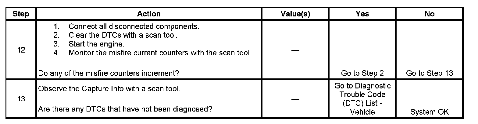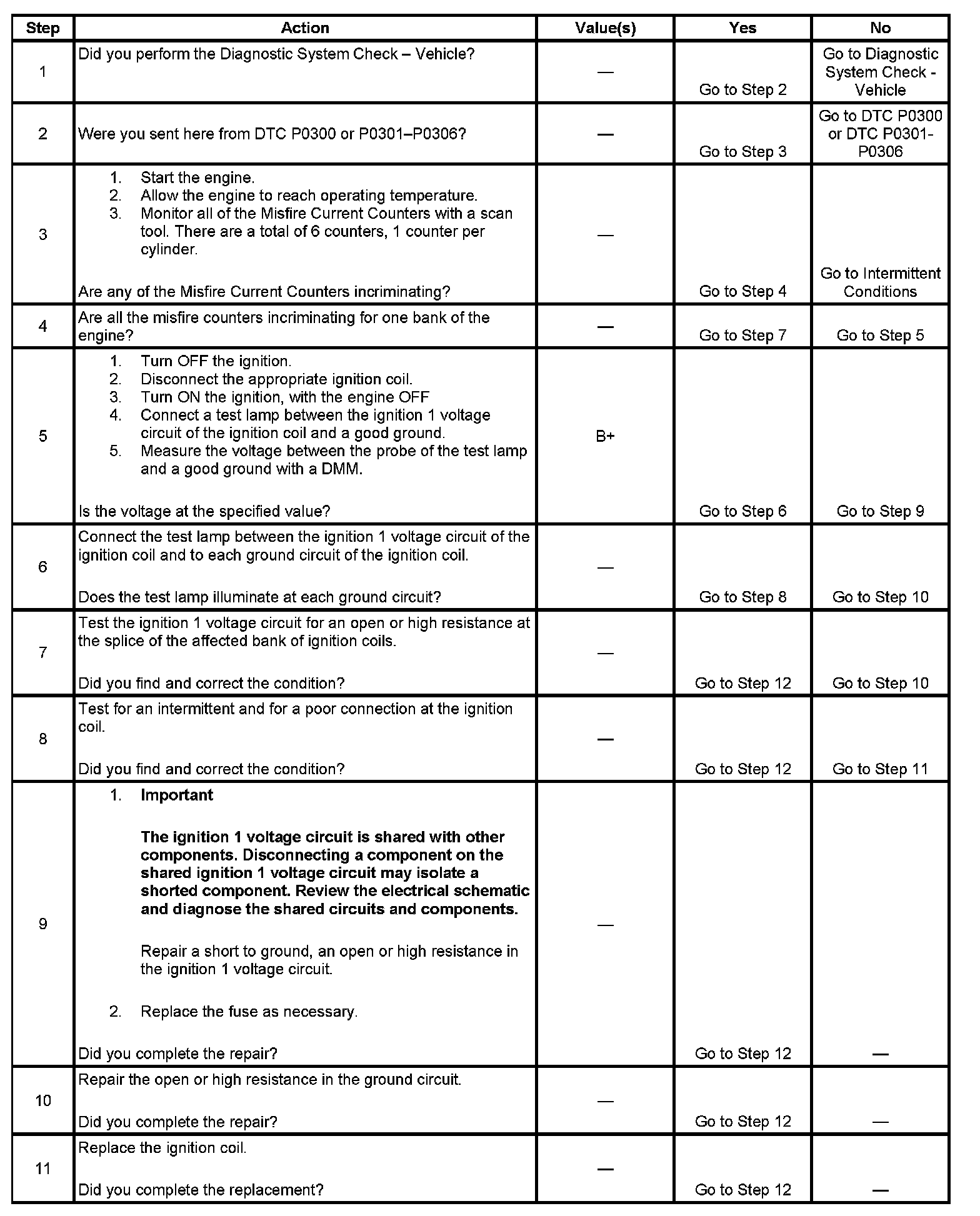 6. This step determines if the ground circuit is open. If the circuit is open, the ignition coils would be inoperative for one bank of the engine.