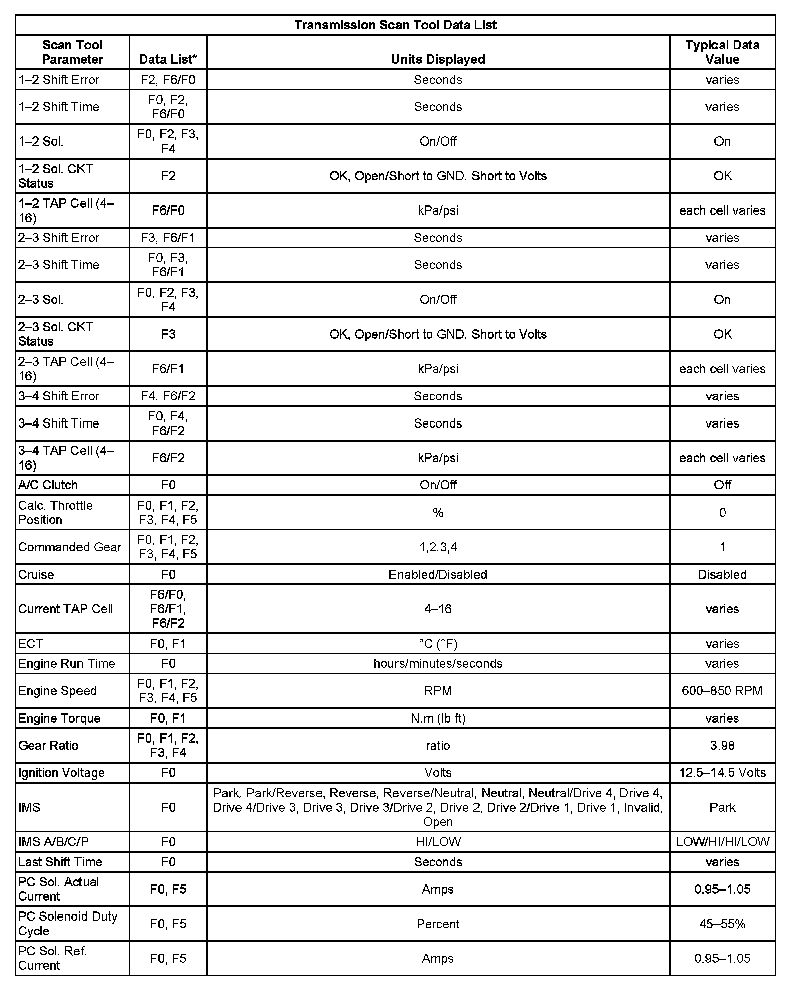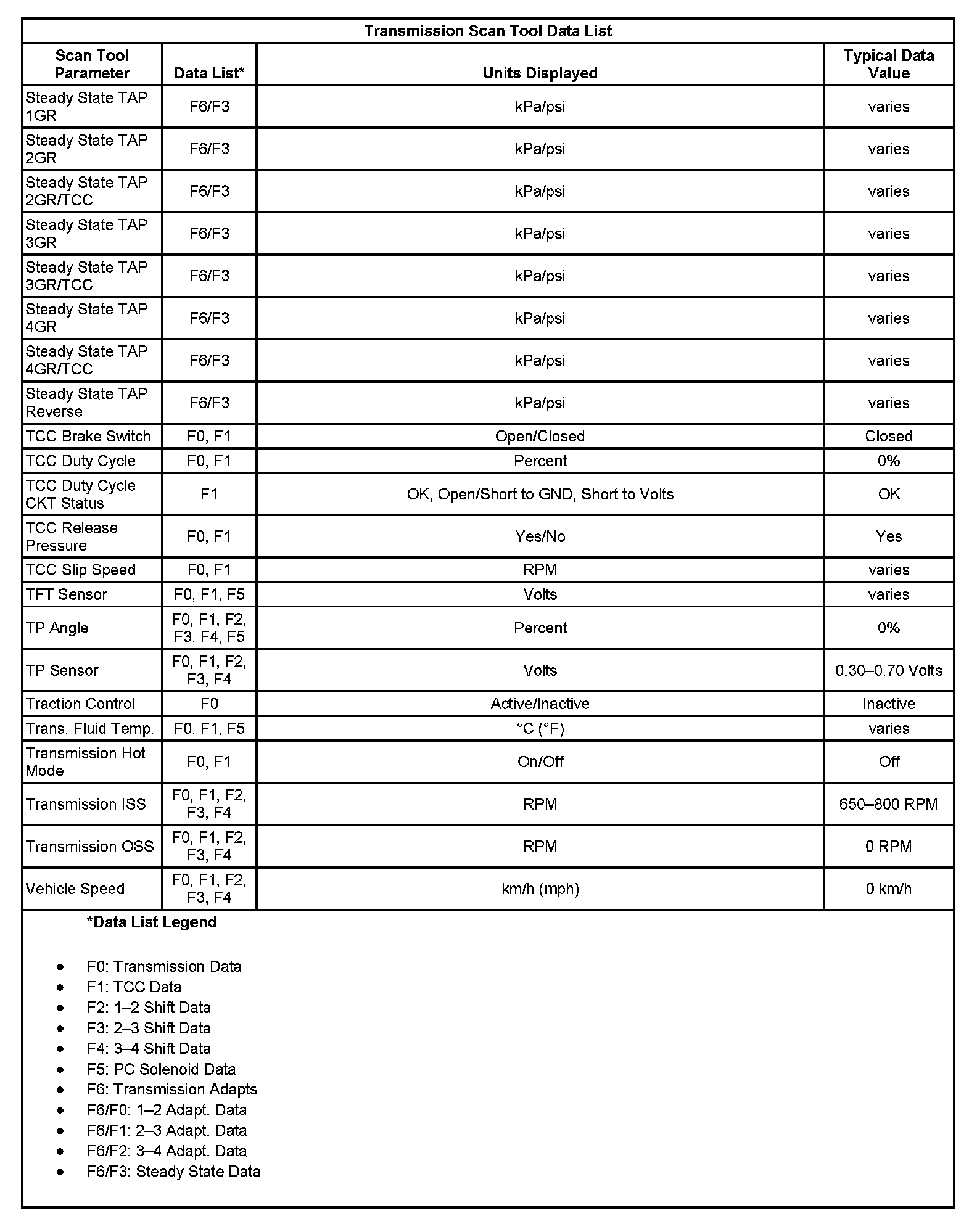 Only these parameters listed are used for diagnosing. If a scan tool displays other parameters, the values are not recommended by General Motors for use in diagnosis.