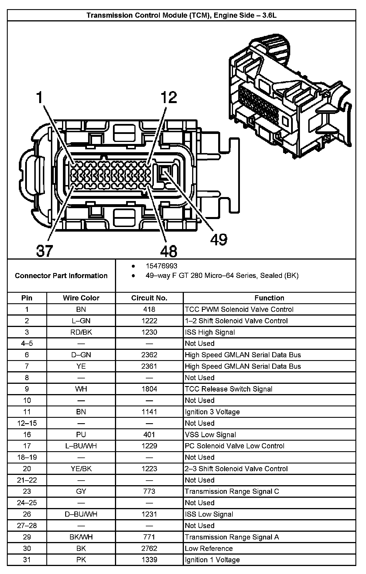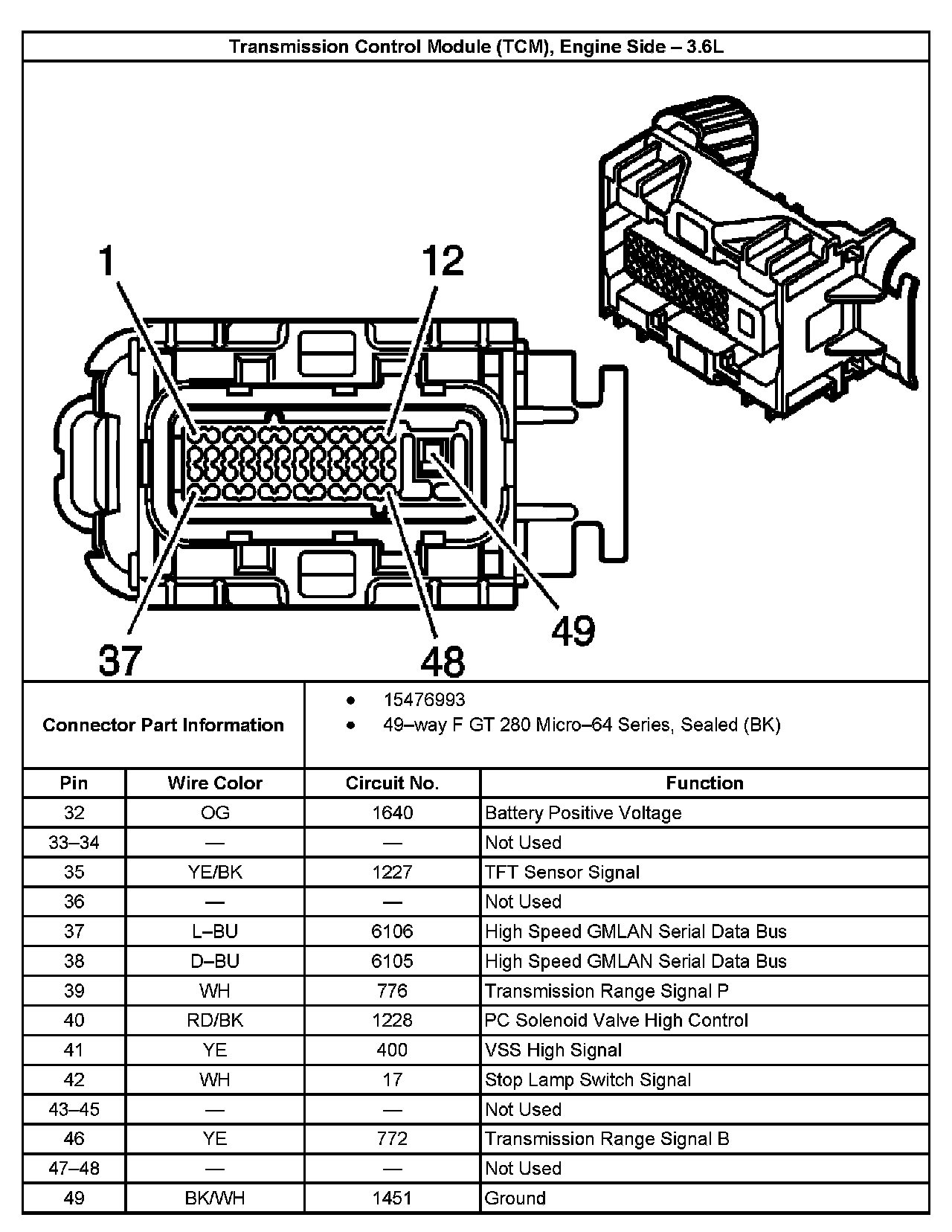 Transmission Control Module (TCM) Connector End View, Engine Side - 3.6L (2 Of 2):