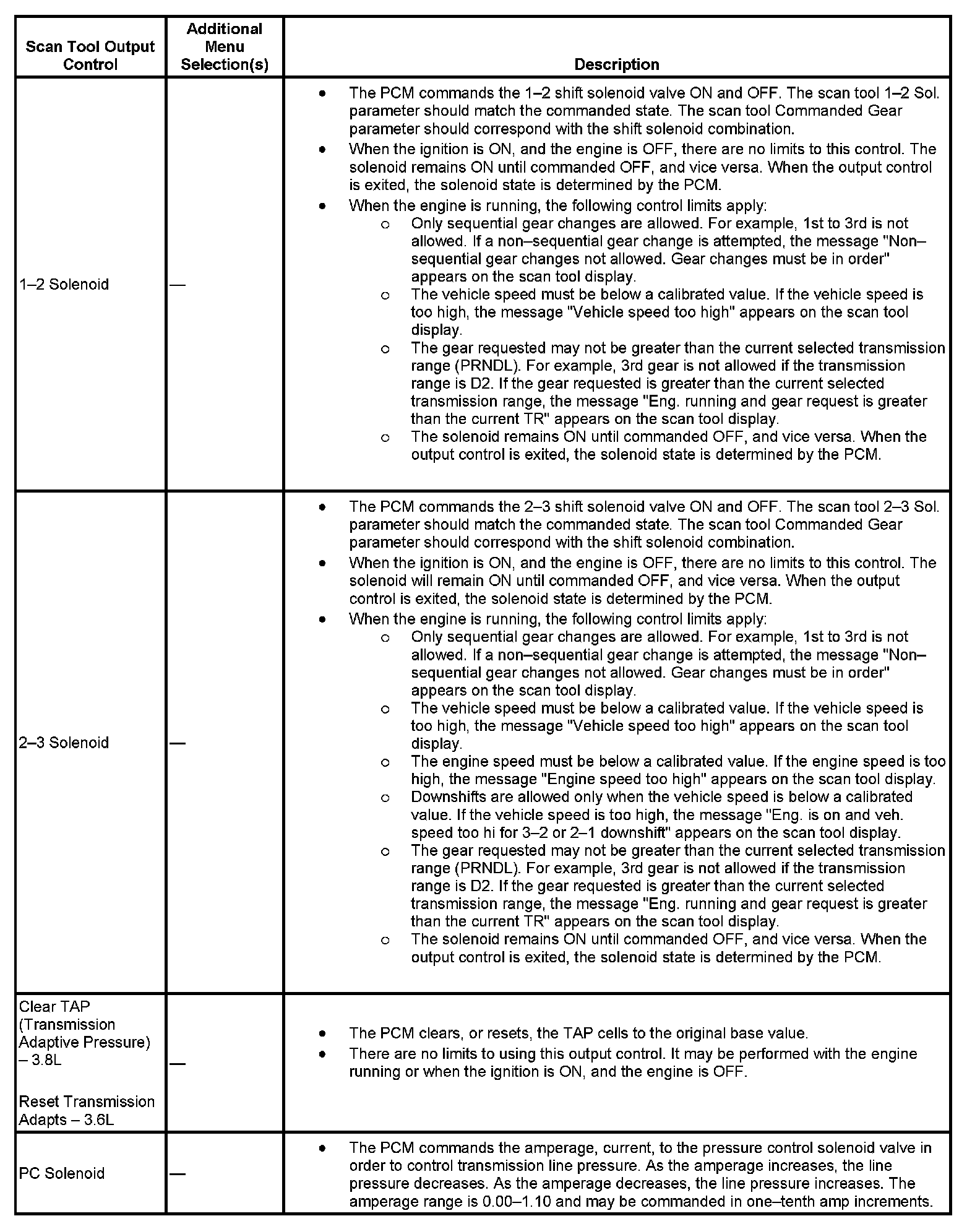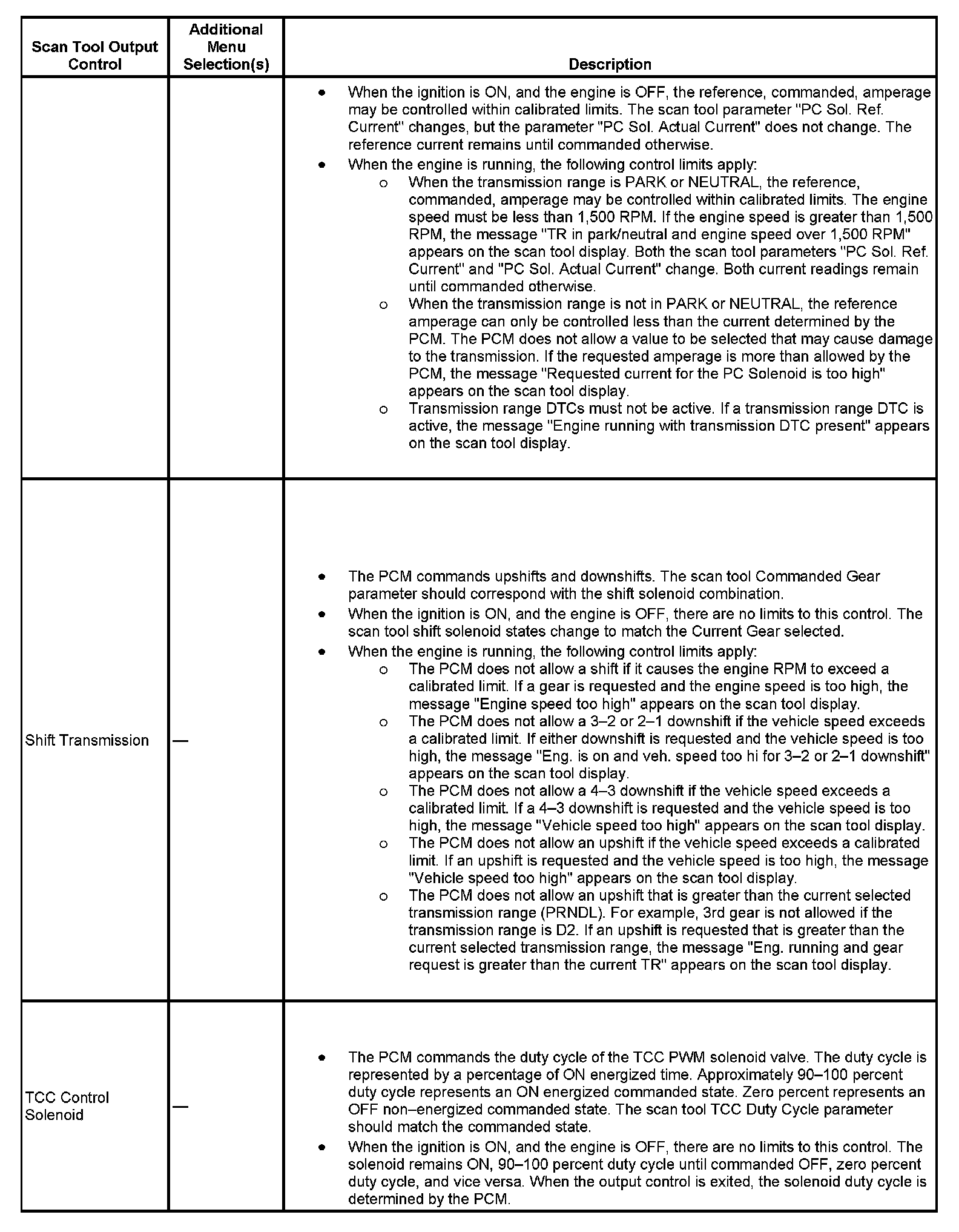 Scan Tool Output Controls