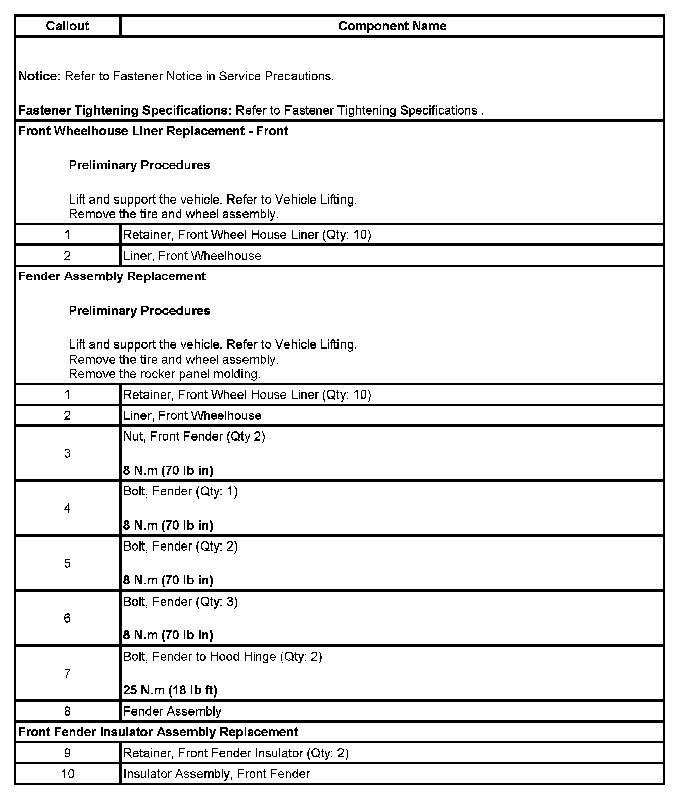 Front Fender Liner: Service and Repair