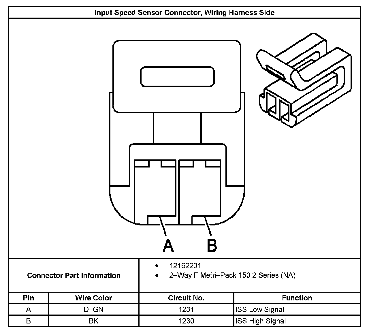 Input Speed Sensor Connector End View, Wiring Harness Side:
