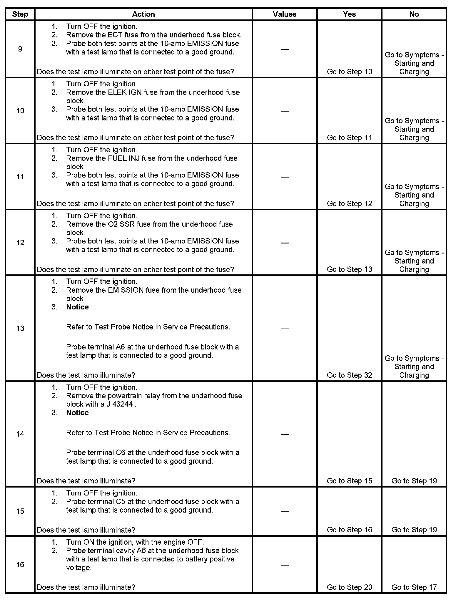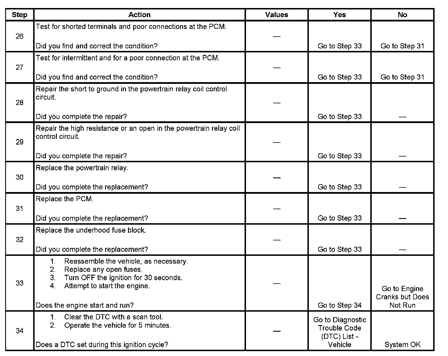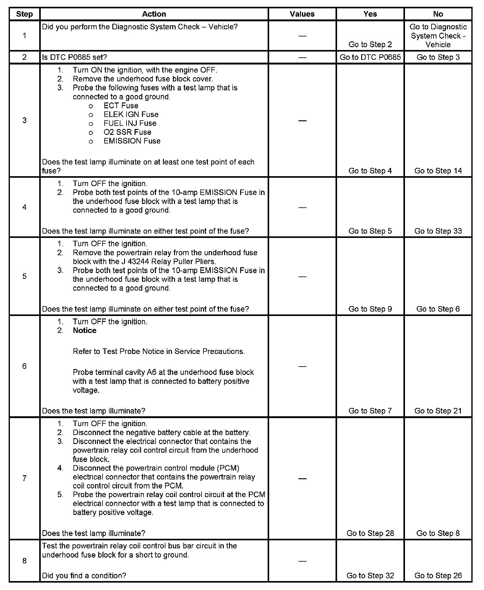 The powertrain relay system diagnosis table assumes that the vehicle battery is fully charged.