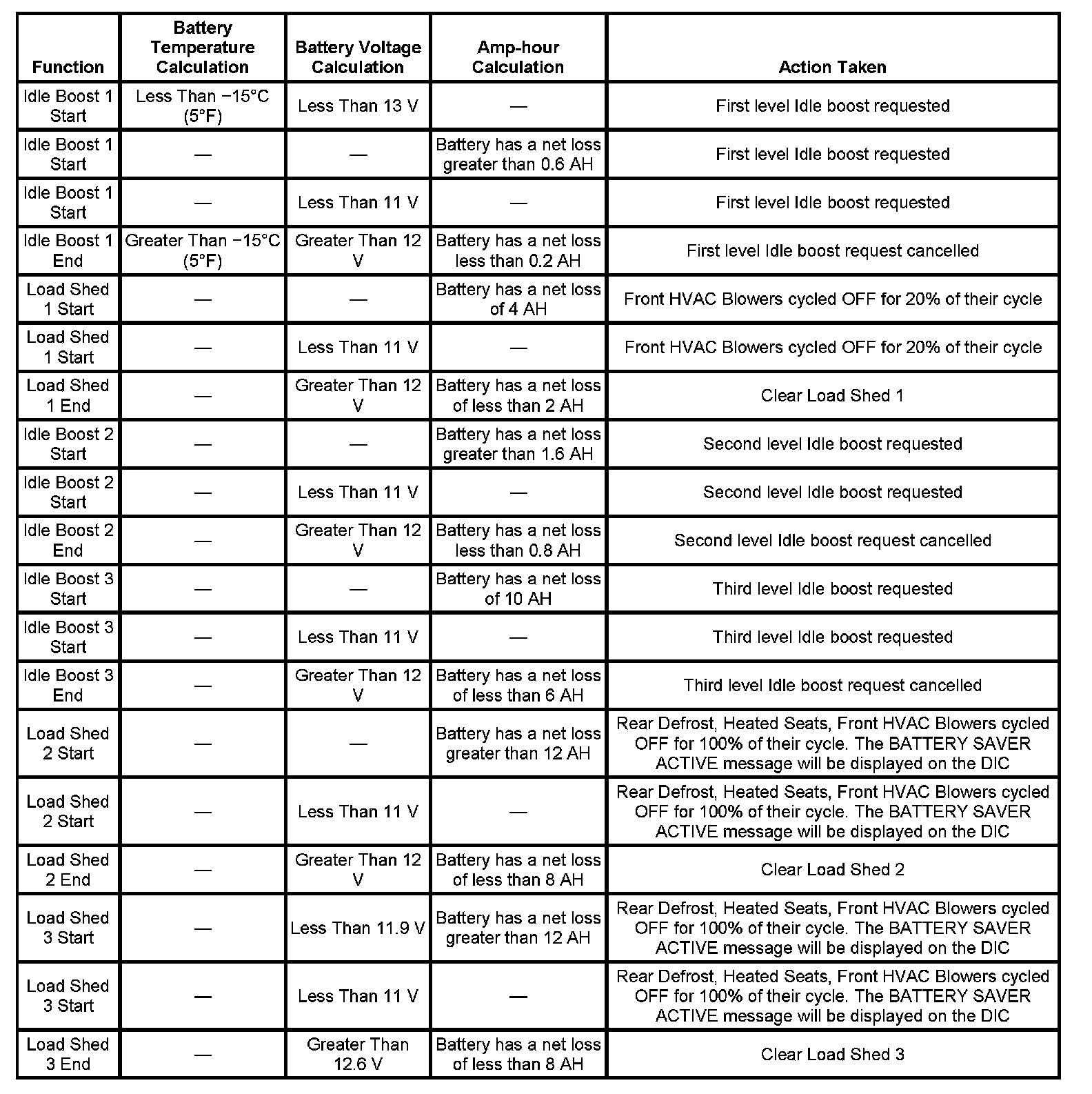 Each EPM function, either idle boost or load-shed, is discrete. No 2 functions are active at the same time. Idle boost is activated in incremental steps, idle boost 1 must be active before idle boost 2 can be active. The criteria used by the body control module (BCM) to regulate EPM are outlined.