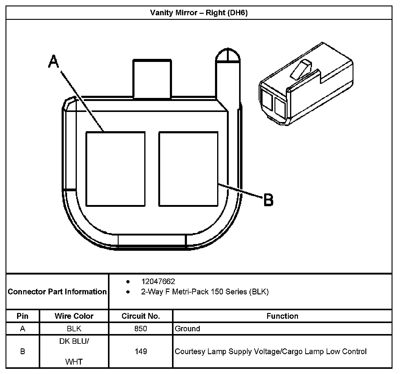 Vanity Mirror - Right (With RPO Code DH6):