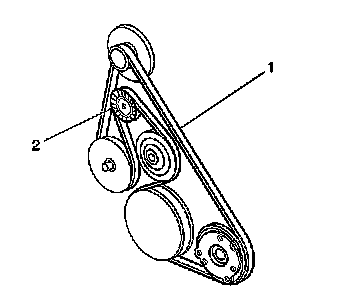 1. Rotate the tensioner (2) counterclockwise to remove the drive belt (1).