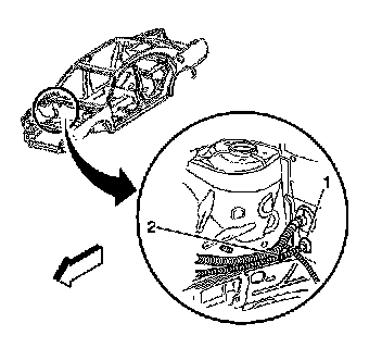 9. Disconnect the battery cable retainer (2) from the body side rail.