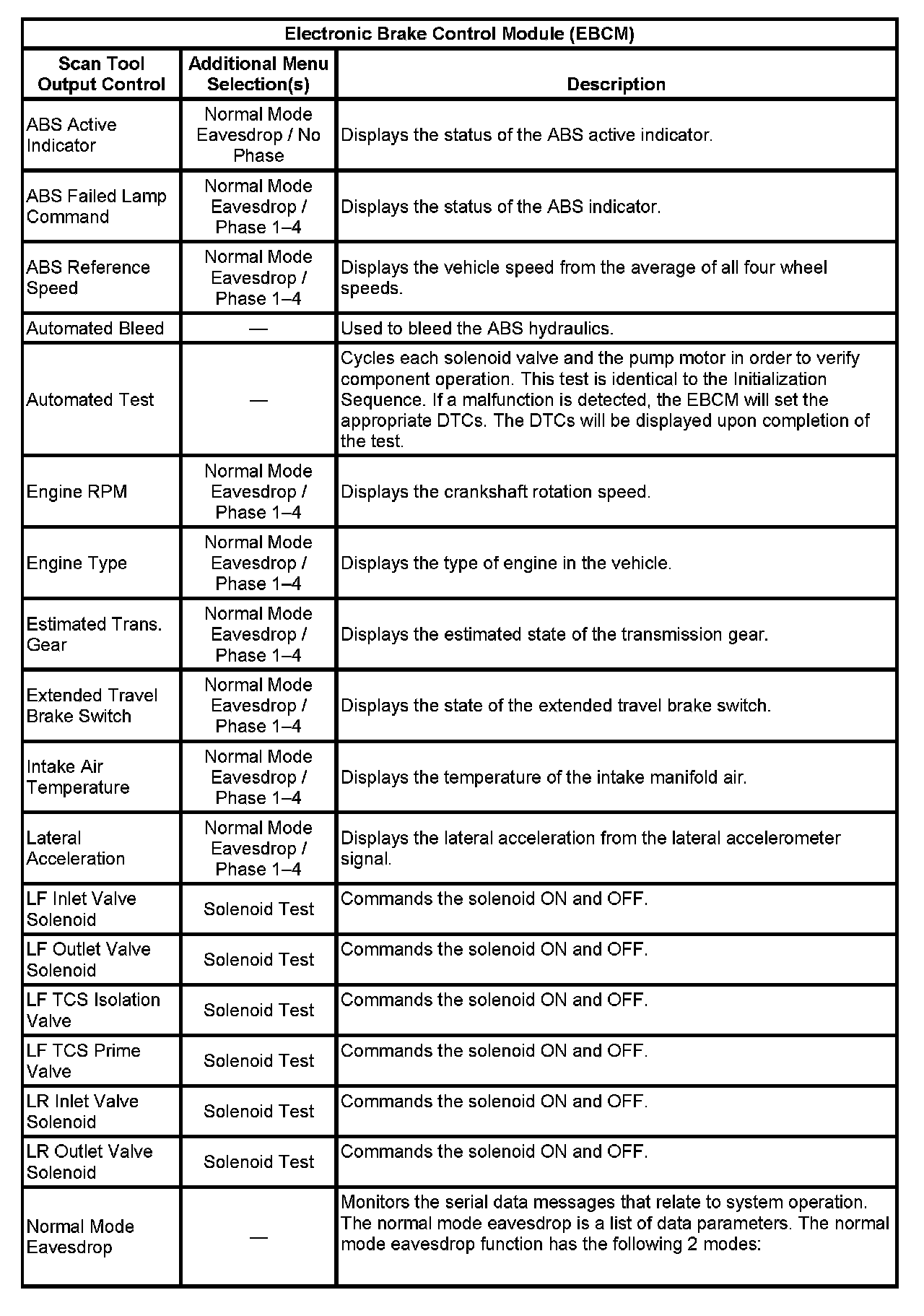 Scan Tool Output Controls