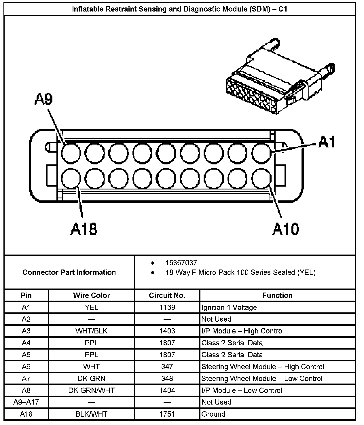 Inflatable Restraint Sensing And Diagnostic Module (SDM) - C1: