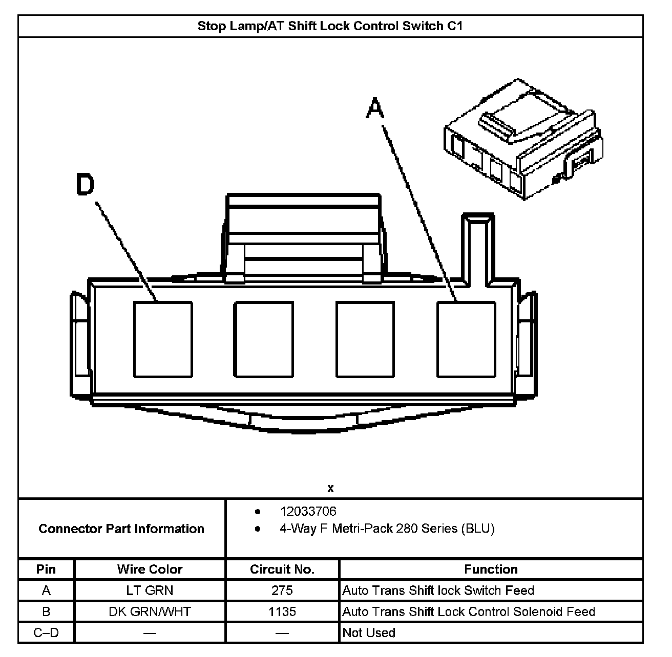 Stop Lamp/AT Shift Lock Control Switch C1: