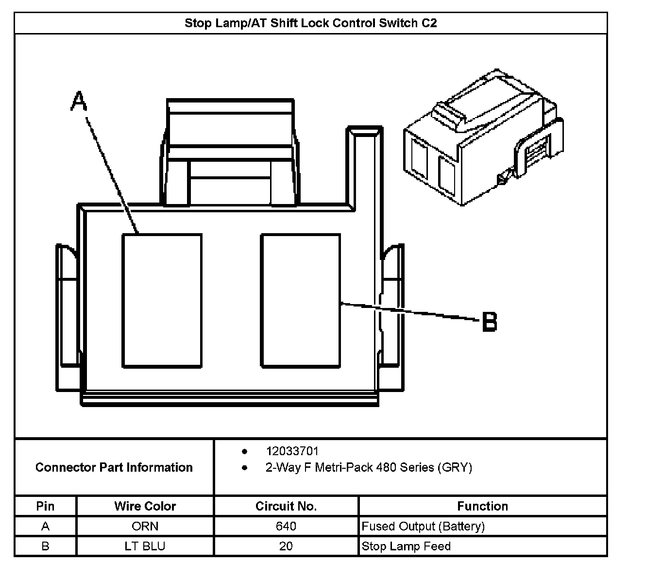 Stop Lamp/AT Shift Lock Control Switch C2: