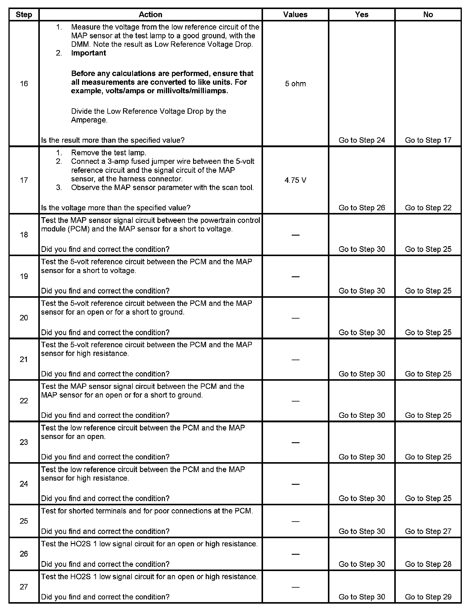 12. The measurement noted in this step will be used in subsequent steps if the measurement does not exceed the specified value.