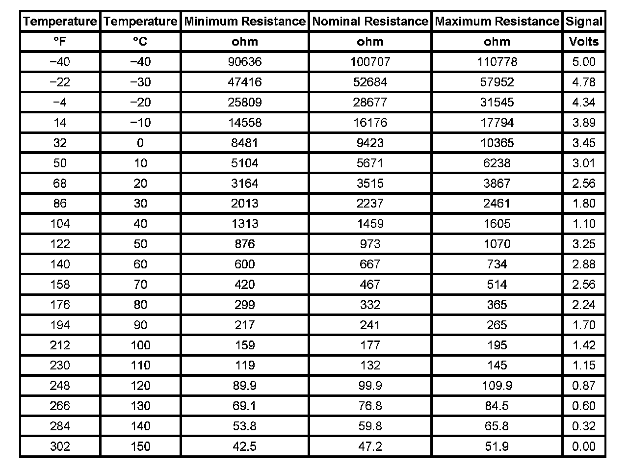 Transmission Fluid Temperature (TFT) Sensor Specifications: