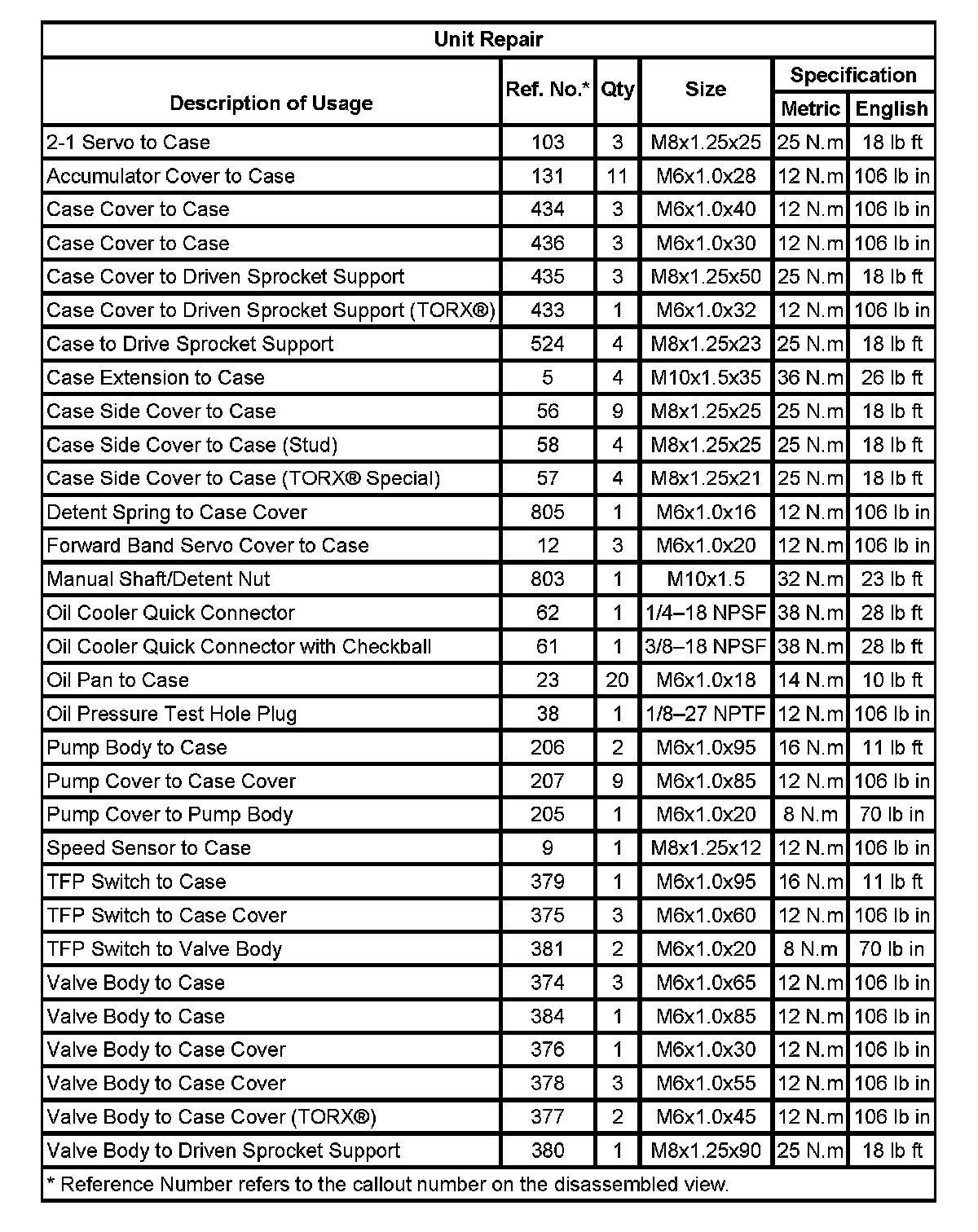 Fastener Tightening Specifications