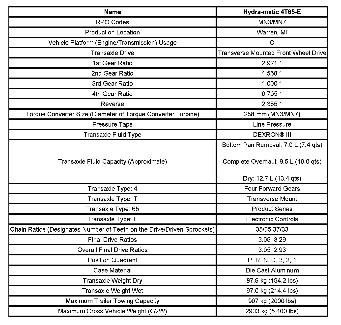 Transmission General Specifications