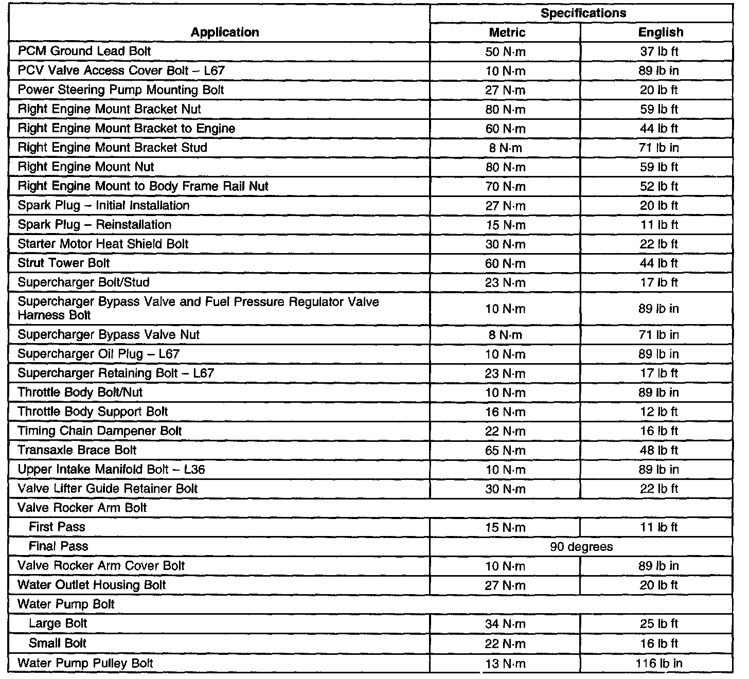 Fastener Tightening Specifications