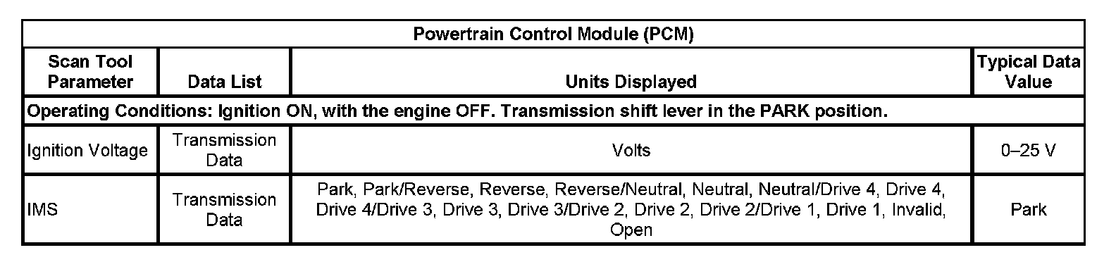 Scan Tool Data List