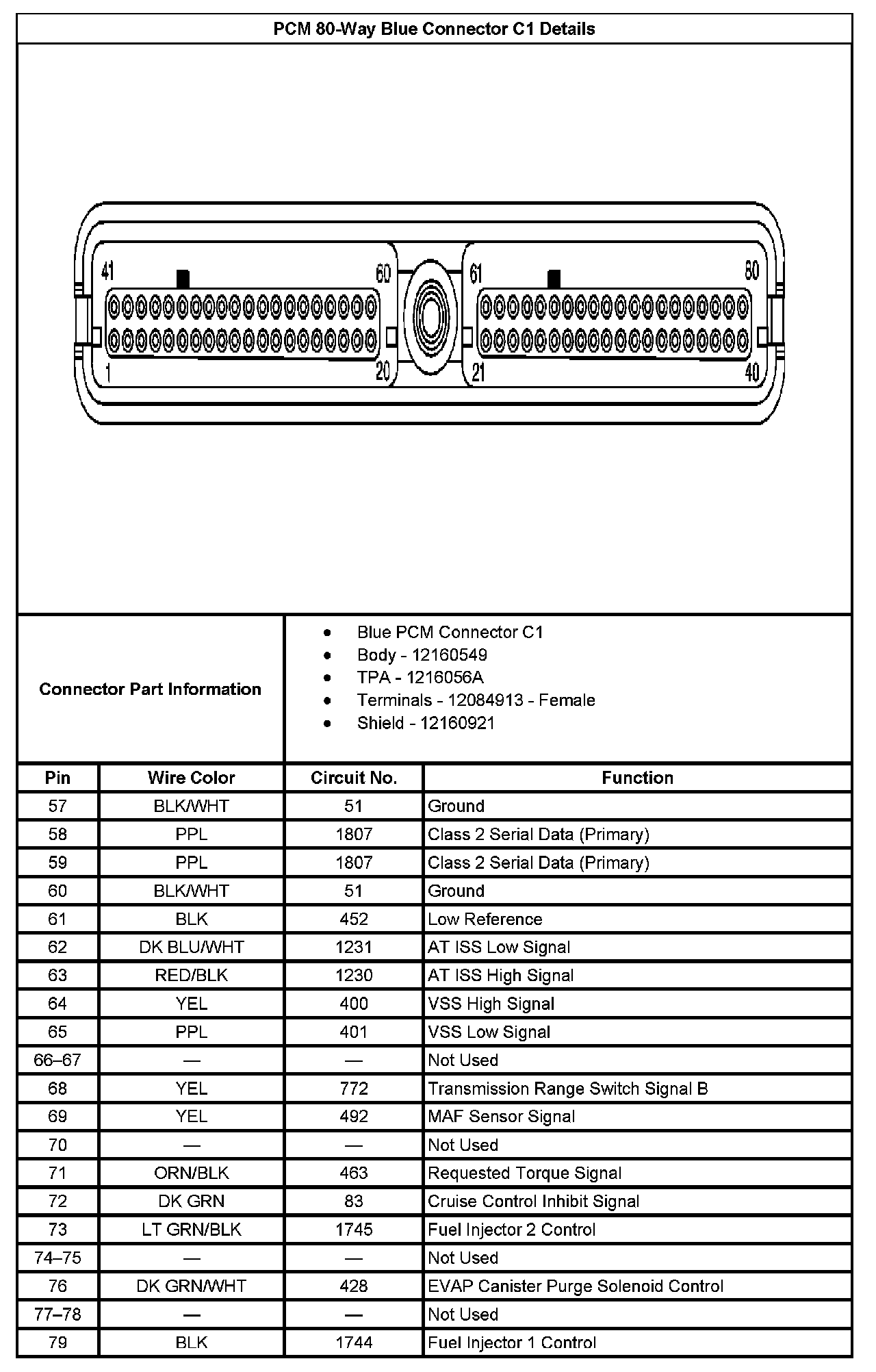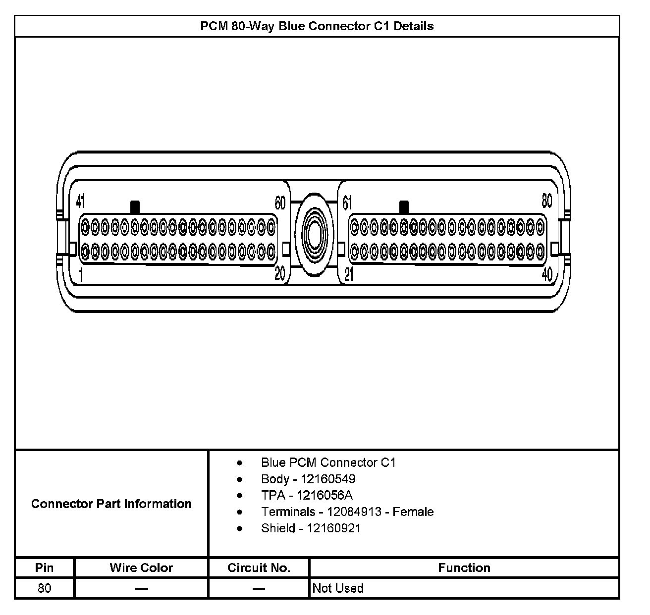 PCM 80-Way Blue Connector C1 Details Part 1: