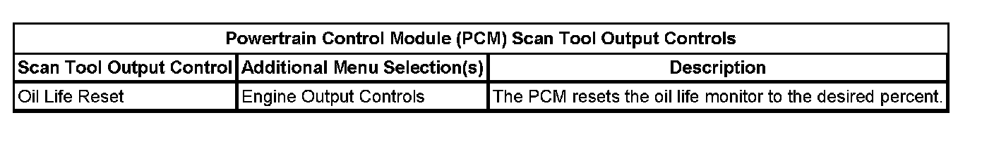 Powertrain Control Module (PCM) Scan Tool Output Controls:
