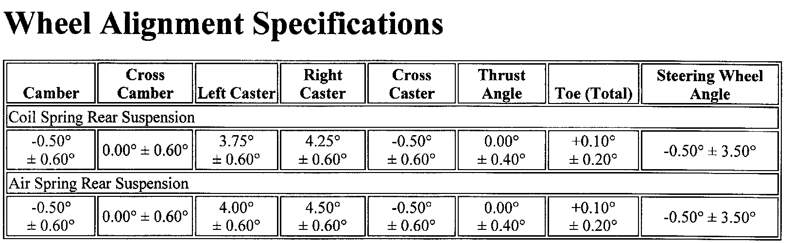 Wheel Alignment Specifications