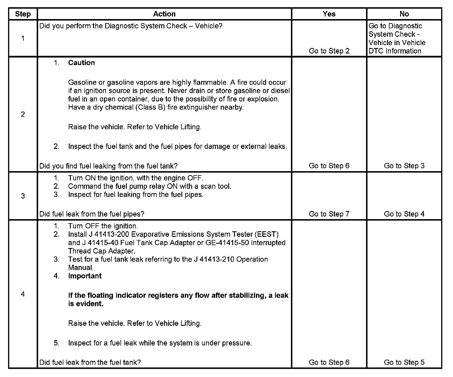 4. This step tests for fuel leaks below the fuel tank fuel level.