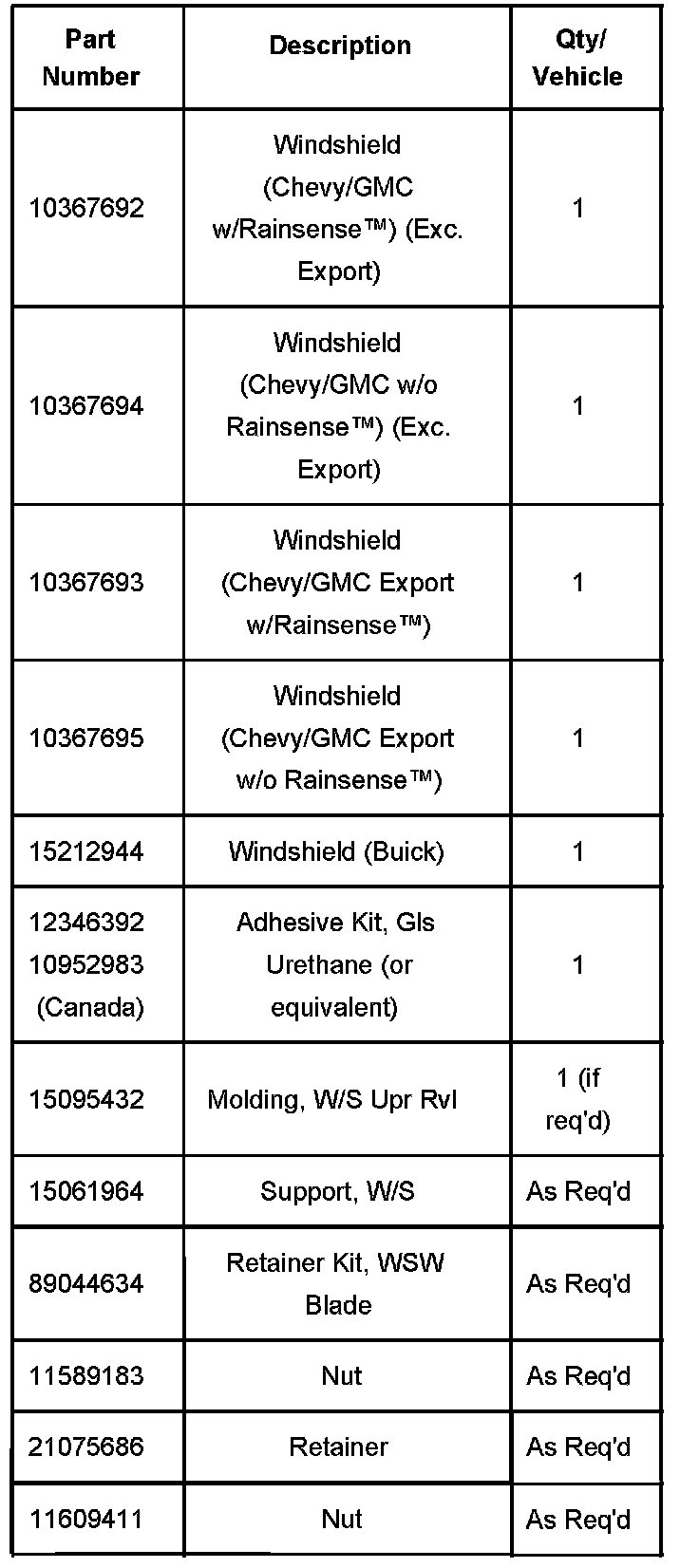 GM branded glass must be used for this repair. Dealers who sublet installations for this repair, please inform your installer of this information.
