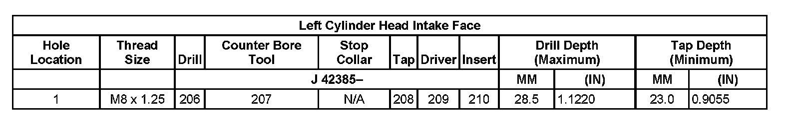 Left Cylinder Head Intake Face: