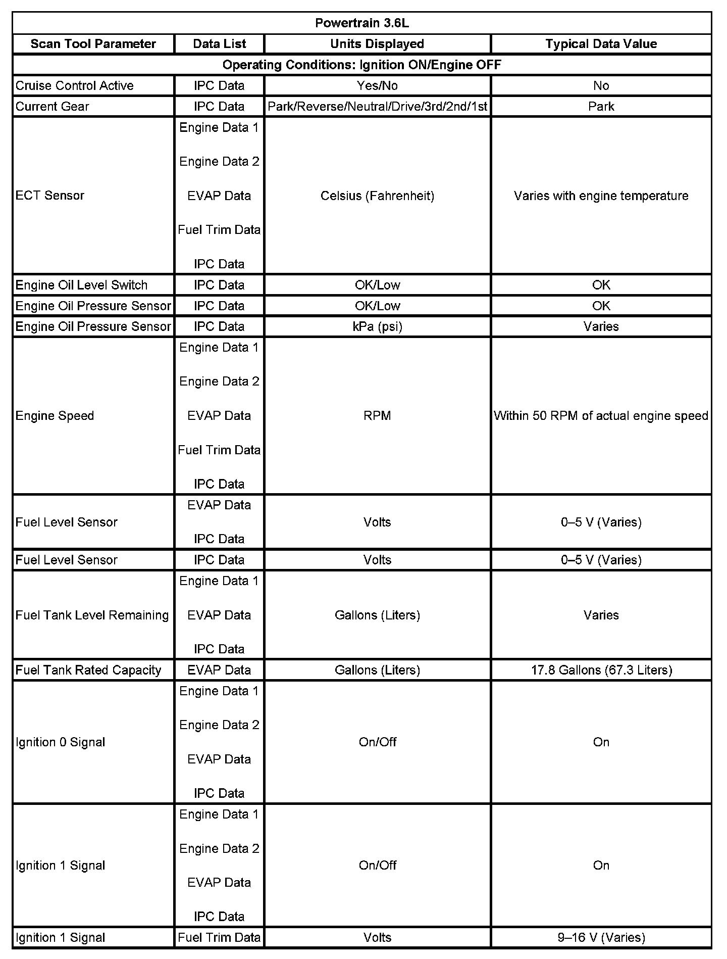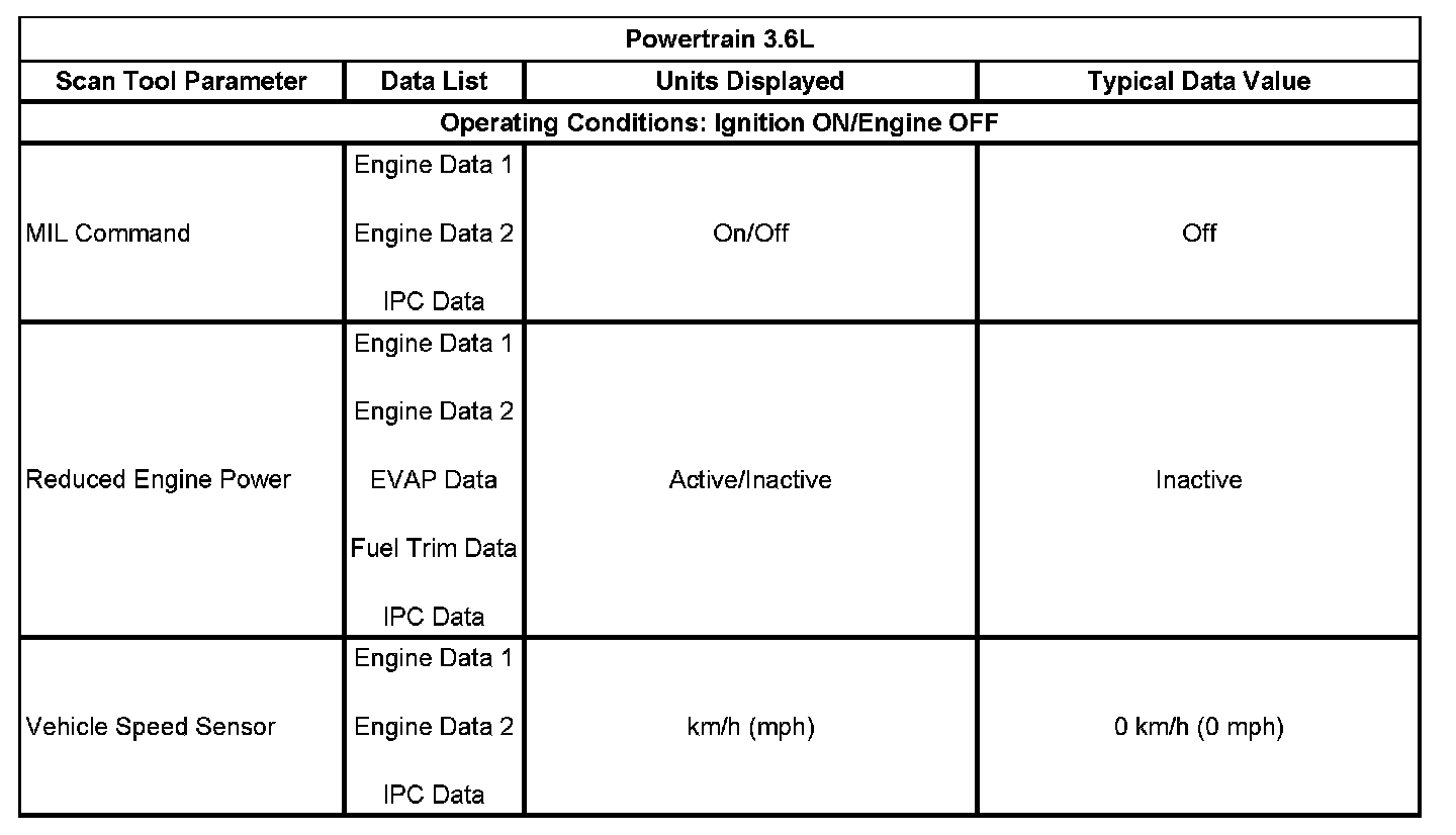 Scan Tool Data List - Powertrain Control Module (PCM)