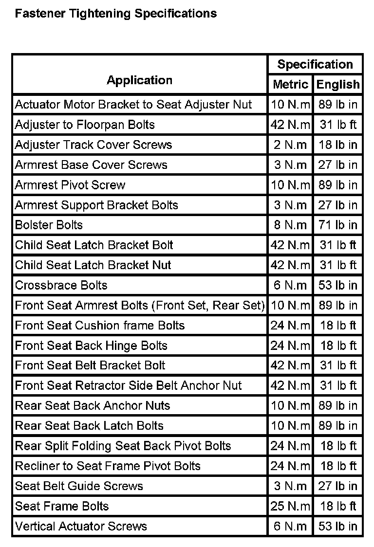 Seats: Specifications