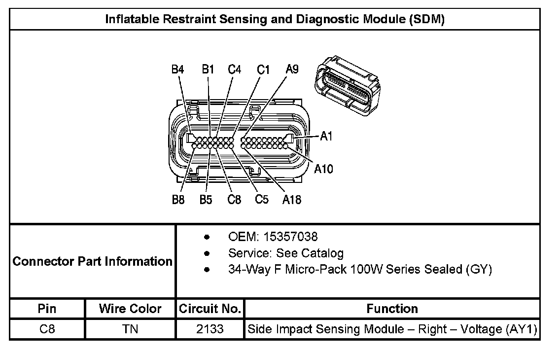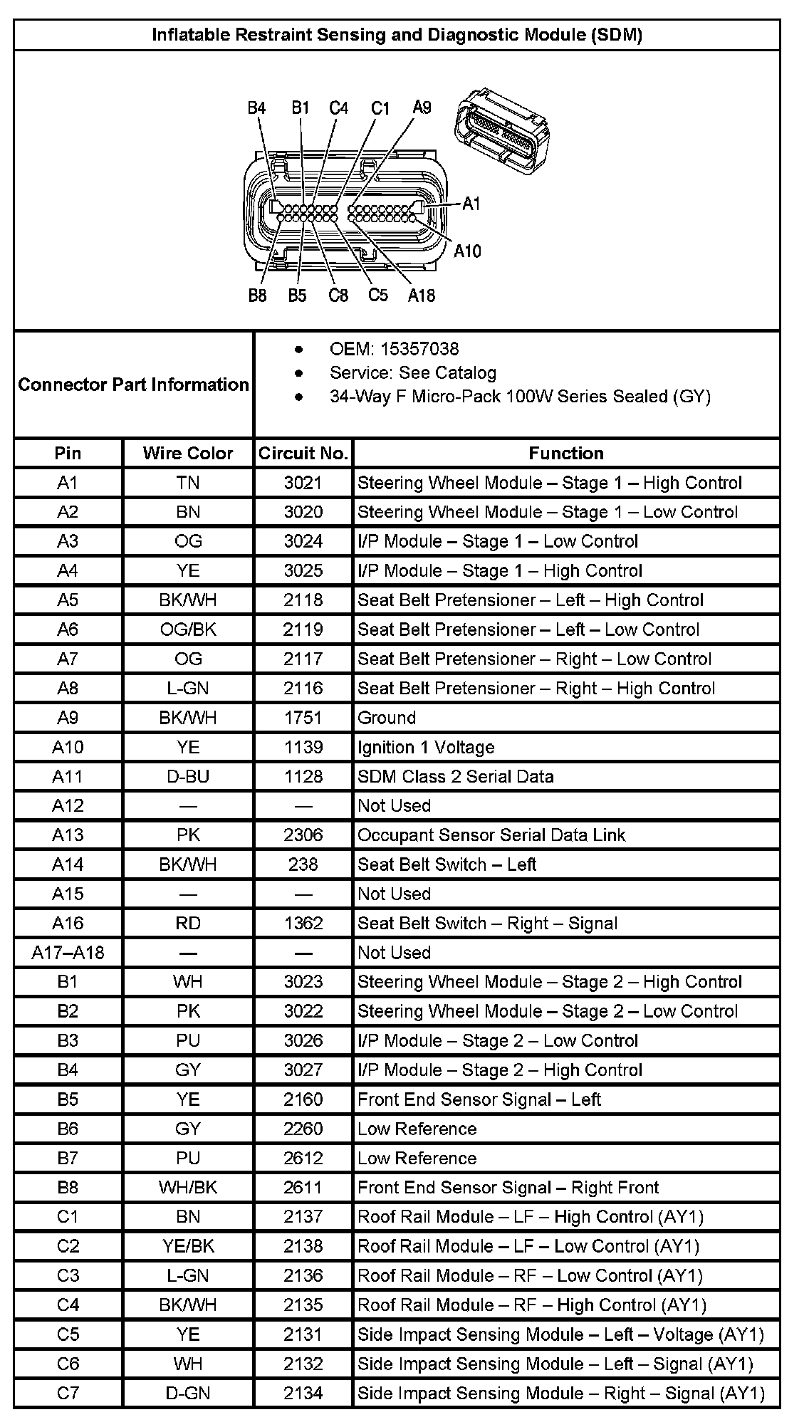 Inflatable Restraint Sensing And Diagnostic Module (SDM):