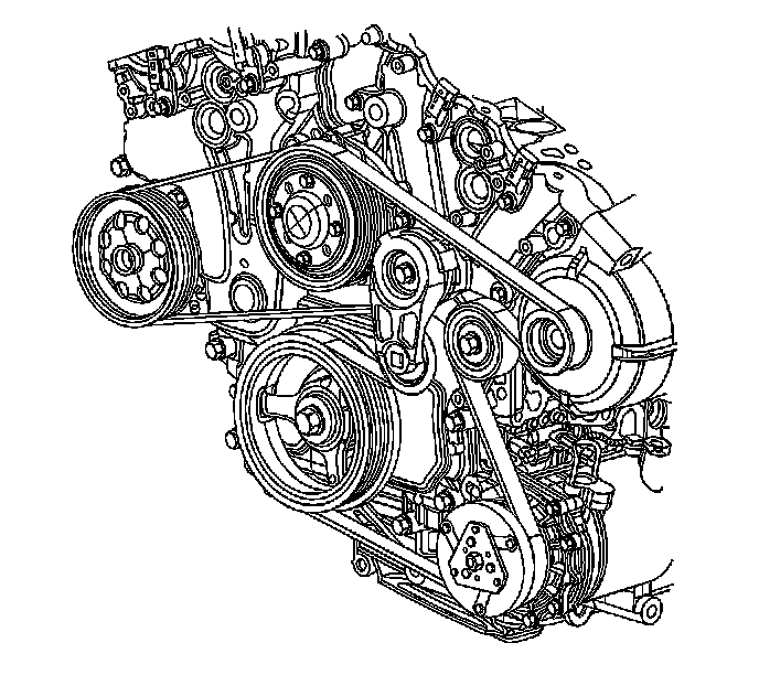 6. Important: Ensure the drive belt is properly aligned and seated into the grooves of the accessory drive pulleys.