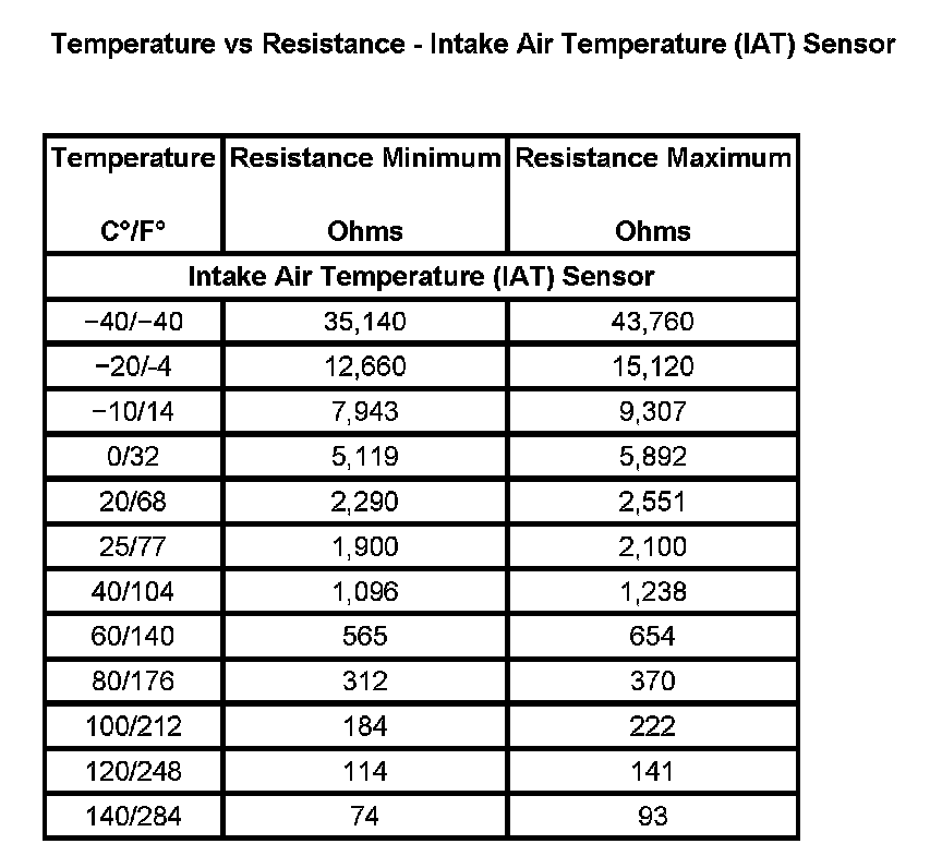 Temperature Vs Resistance - Intake Air Temperature (IAT) Sensor: