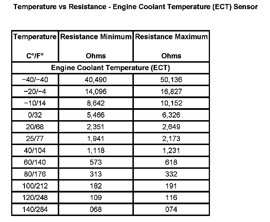 Temperature Vs Resistance - Engine Coolant Temperature (ECT) Sensor: